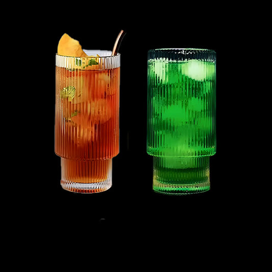 Melbify Ribbed Cocktail Glasses | 350 ml | Highball Cocktail Glass | Tall Glasses for Cocktail | Long Island Cocktail Glass | Unique LIIT Cocktail Glass
