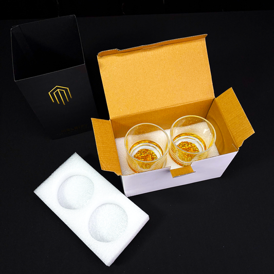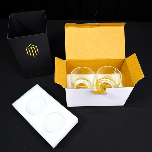 Melbify Japanese Wave Pattern Whiskey Glasses Gift Set | 370 ML | 2 PC | Ultra-Premium | Imported | Luxurious | Ideal for Wedding Gifts, Anniversary, VIP and Corporate Gifts