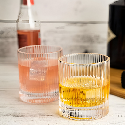 Melbify Ribbed Whiskey Glasses Gift Set | 310 ML | 4 PC | Ultra-Premium | Imported | Luxurious | Ideal for Wedding Gifts, Anniversary, VIP and Corporate Gifts