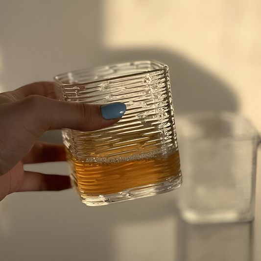 Melbify Japanese Wave Pattern Whiskey Glasses | Volume=370ML | Premium | Rocks Glasses | Perfect for Whiskey, Scotch, Rum, and Cognac