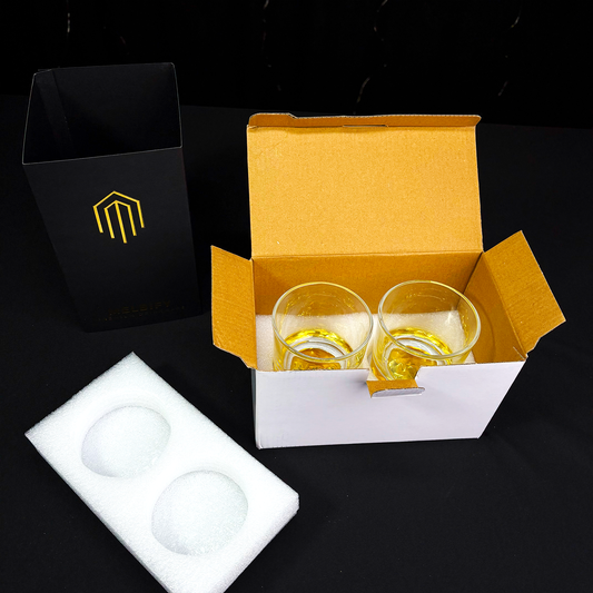 Melbify Square Shaped Dotted Whiskey Glass | 300 ml | Heavy | Unique Shape | Imported | Crystal Clear | European Design | Premium | Ideal for Serving Whiskey, Rum, Vodka and Gin