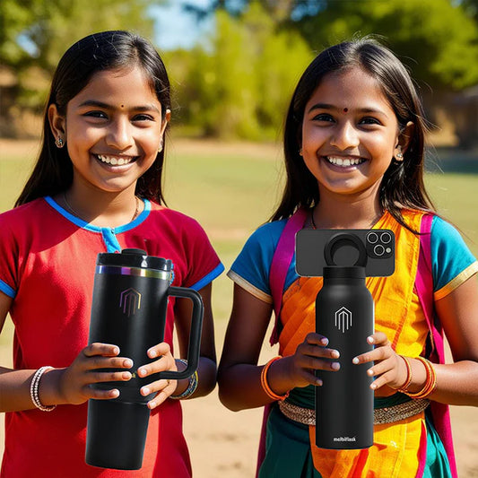 Checkout our 3-in-1 Thermosteel water bottles with attached storage containers. Ideal to carry snacks, medicines, baby food and personal items.