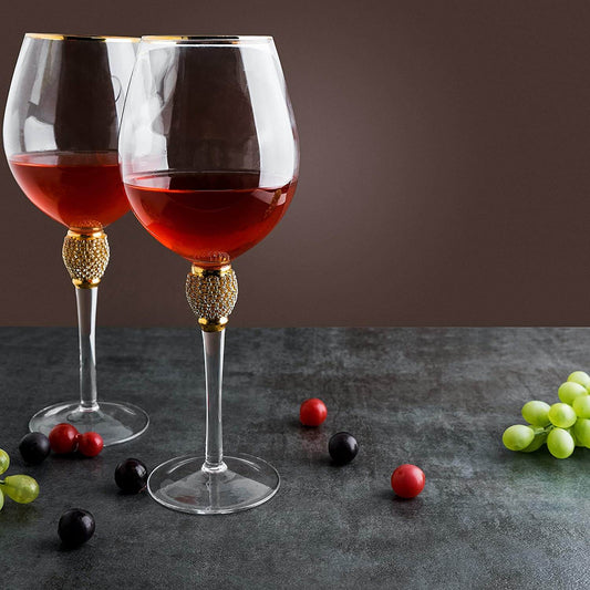 Melbify Crystal Jewel Wine Glass | 500 ml | Red Wine Glass Set | Imported | Unique | Classy | Designer Wine Glass with Gold Rim | Fancy | Luxury