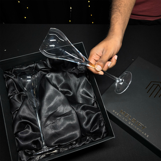 Melbify Cylinder Champagne Flute Glasses Gift Set | 160 ML |Set of 2 |Elegant Gift Box| Ultra-Premium Wine Glass |Luxury|Fancy|Crystal Glass|Limited Edition|Perfect for Red & White Wine & Champagne | Ideal For Wedding Couple Anniversary Gift