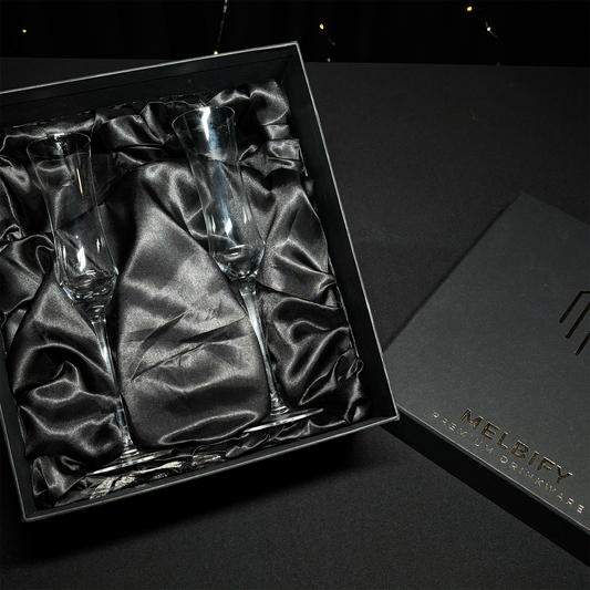 Melbify Tube Champagne Flutes Glasses Gift Set | 160 ML | Set of 2 |Elegant Gift Box|Ultra-Premium|Luxury|Fancy|Crystal Glass|Limited Edition|Perfect for Red White Wine Champagne|Ideal For Wedding Couple Anniversary Gift