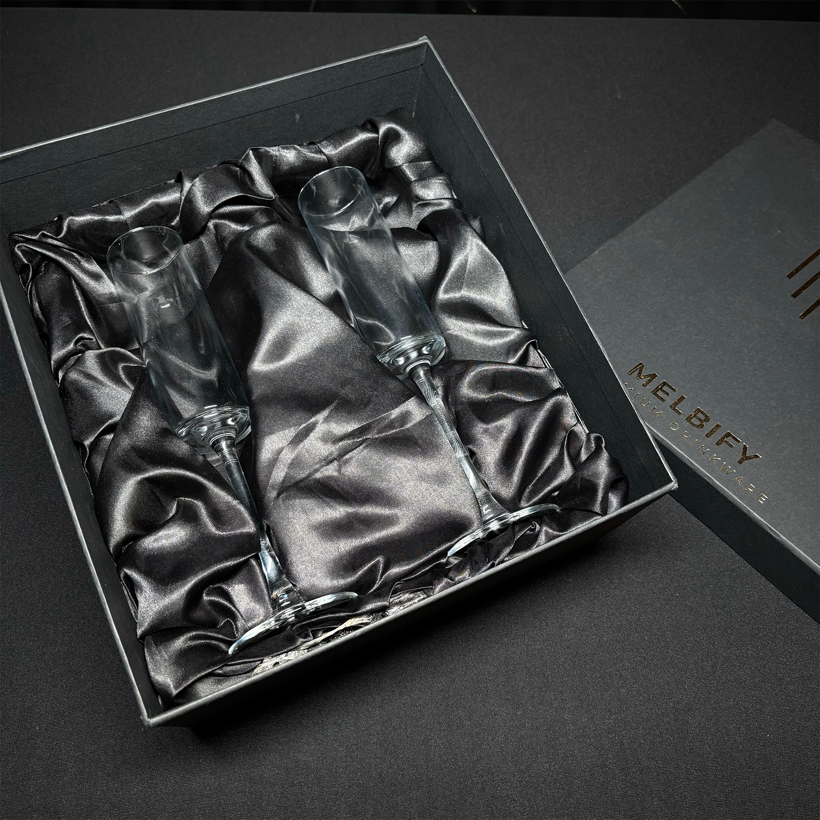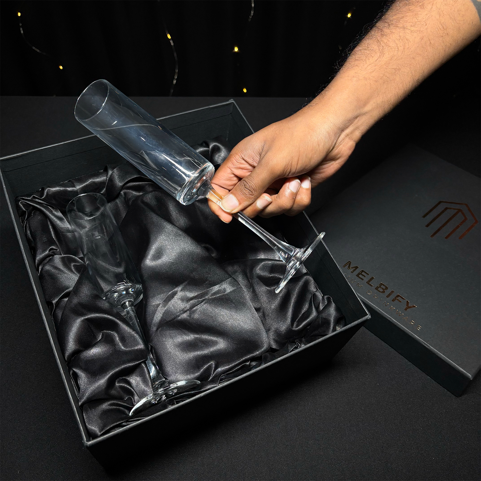 Melbify Cylinder Champagne Flute Glasses Gift Set | 160 ML |Set of 2 |Elegant Gift Box| Ultra-Premium Wine Glass |Luxury|Fancy|Crystal Glass|Limited Edition|Perfect for Red & White Wine & Champagne | Ideal For Wedding Couple Anniversary Gift