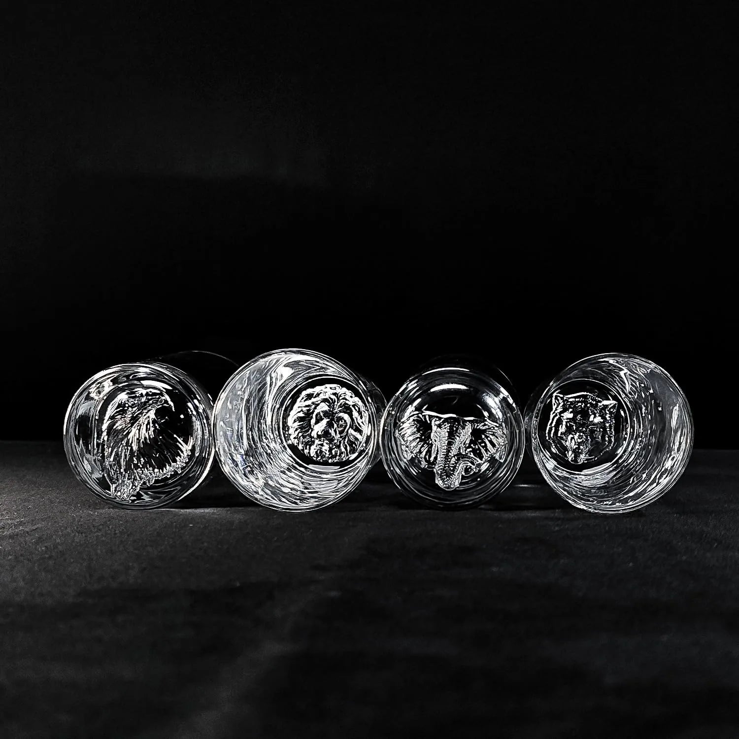 Each glass features a finely embossed animal face at the bottom, revealed beautifully as you sip. The detailed craftsmanship creates a striking visual effect, making every drink feel special and adding character to your barware collection.