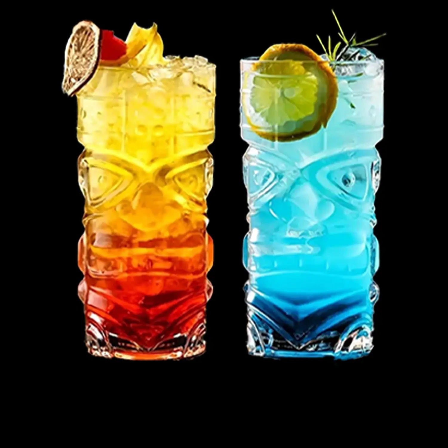 - PERFECT DOUBLE SIDED DESIGN:- The tiki face are molded in double sides, the tiki mugs signify the Mayan Culture, are charming and solidly crafted, very beautiful design, a great addition to home bar collection. The transparency makes these glasses perfect for drinks with different colors and layers.